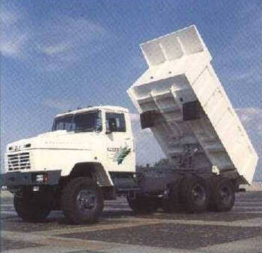 | KrAZ-65053 is a 6 X 4 chassis. This chassis is available with either 5140 mm or 5830 mm chassis base, with flatbed or cabin with a sleeping bench and other additional equipment such as a forcified engine. |